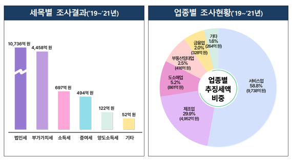 세무조사당 부과되는 세액을 계속 파악하면서 역외탈세자가 늘고 있습니다.2021년 기준 68억 1,000만 원을 기록했는데, 이는 일반 법인세 세무조사 때 부과된 9억 8,000만 원의 약 7배 수준입니다.