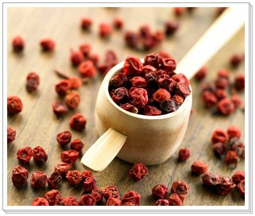 오미자는 신맛이 나고 색이 붉으며 오미자라고 하여 여러 가지 효능이 있다. 따라서 많은 사람들이 오미자차의 효능을 고려해 직접 치파오를 만들거나 구매한다. 오미자는 단맛, 쓴맛, 신맛, 짠맛, 매운맛이 있는데 신맛이 가장 강하다고 한다.